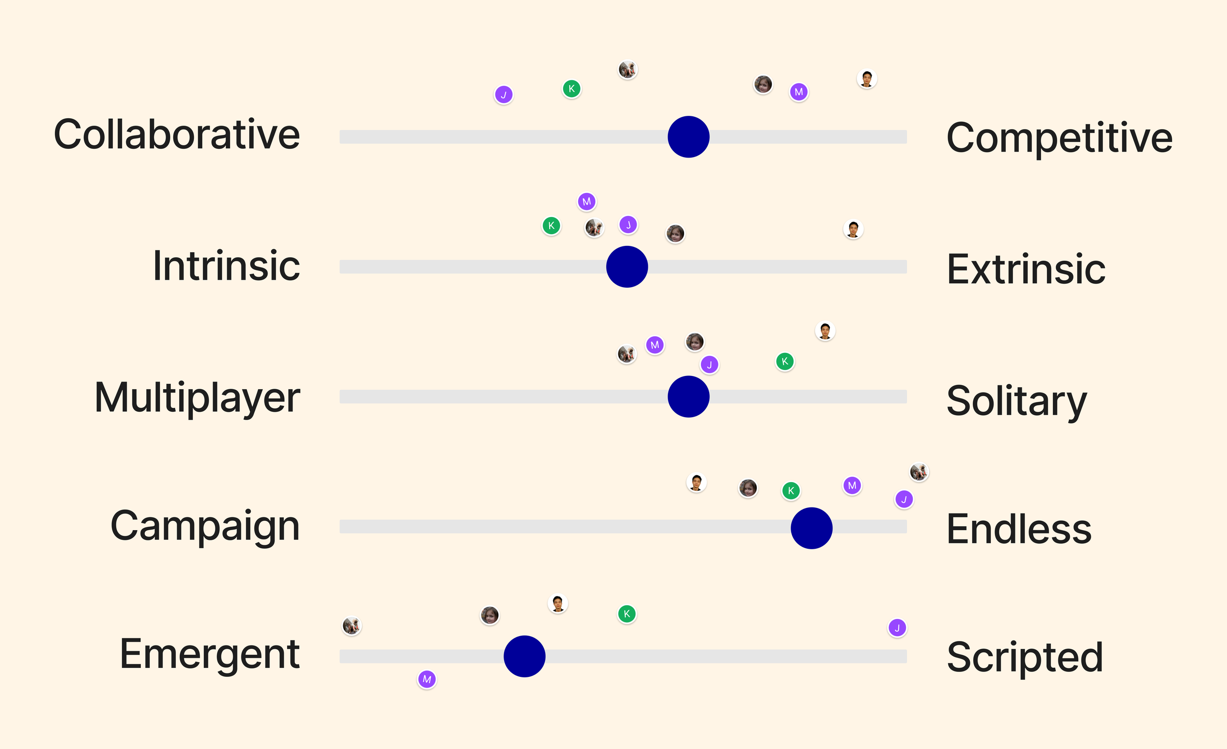 Our gamification structure emphasizes positive motivators while taking into account some elements of negative motivators. We have carefully designed and planned this structure to achieve a balanced and engaging experience, with room for testing and iteration as we move forward.