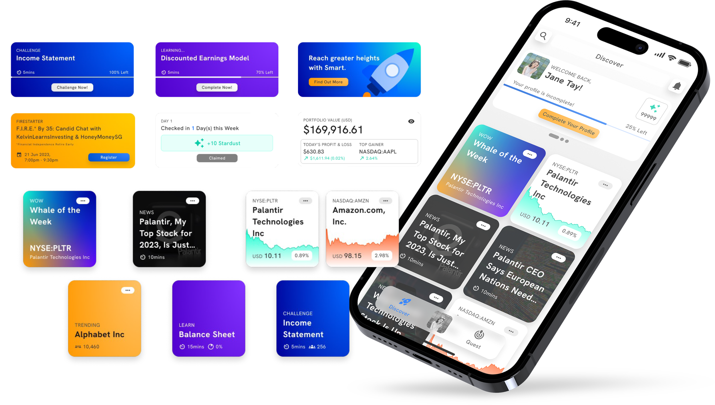 Constant discovery of new potential stocks and challenges, as well as the use of gamification ideas and rewards to enhance the overall app experience.