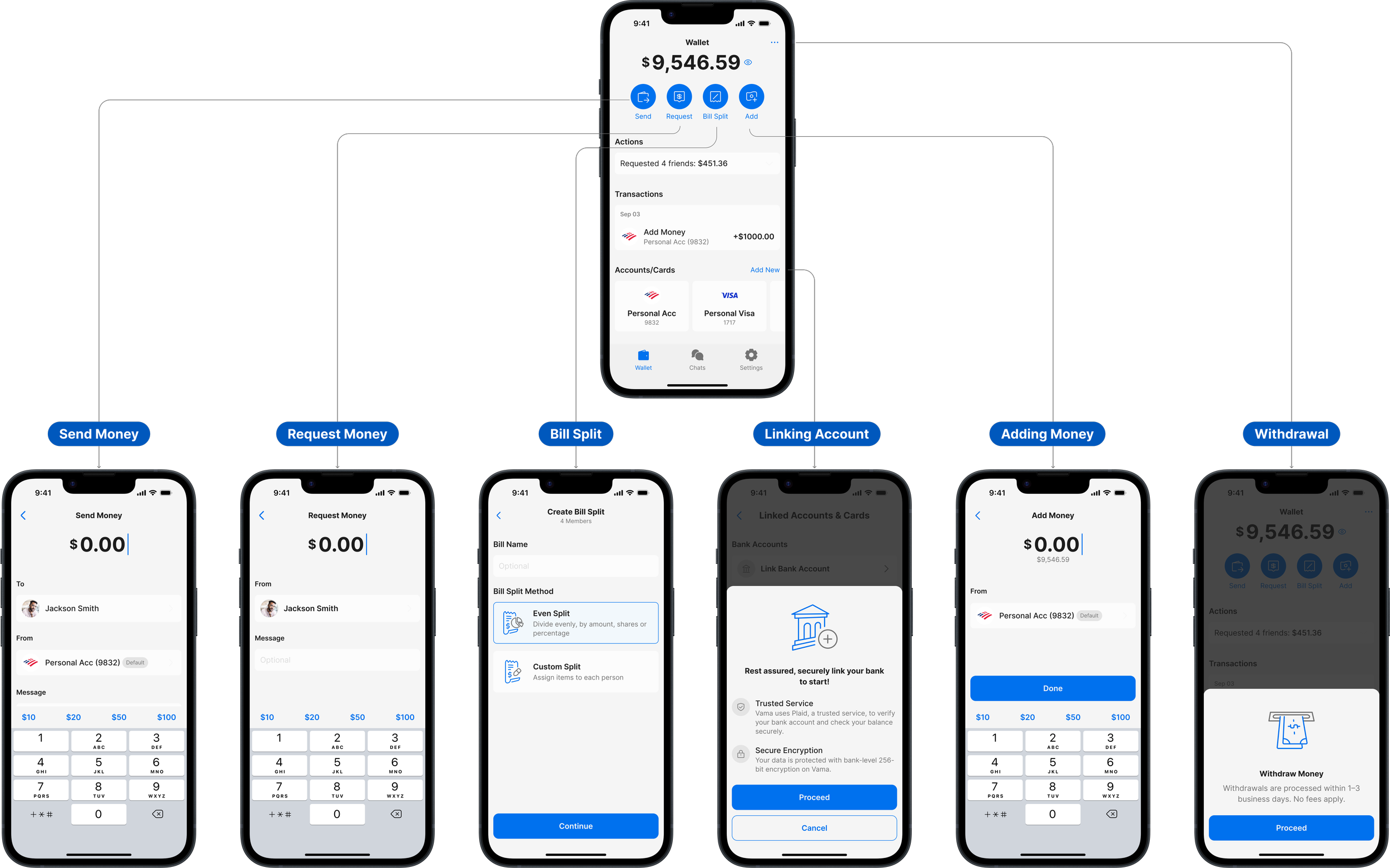 • Targeted usability testing of key flows, including KYC, bank linking, and peer transactions.