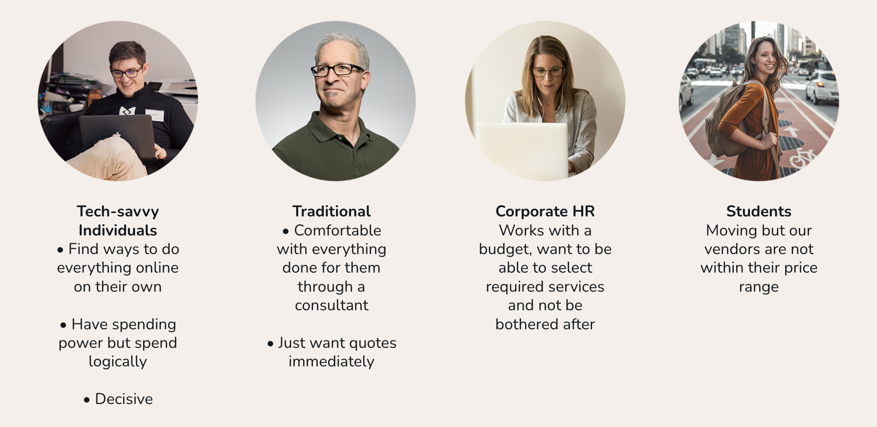 Based on the insights gathered, we concluded that users require the following services for their relocation, sequence in terms of importance to their relocation planning: